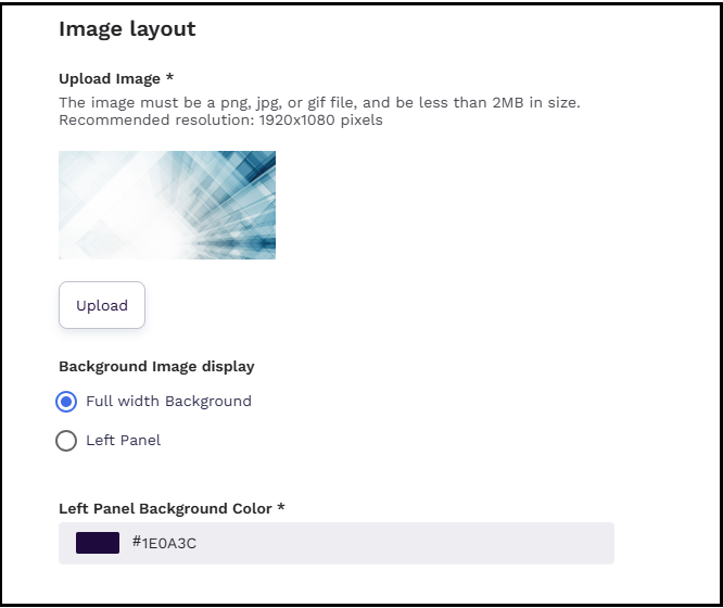 - Left Panel – Select this option to display the image only on the left panel of the sign-in page.