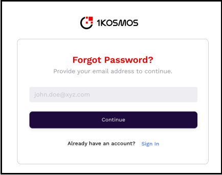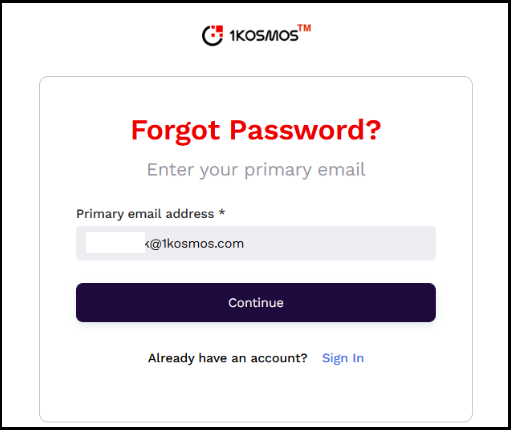 You will be navigated to the Forgot Password? page where you will have to enter your primary email address and click Continue.