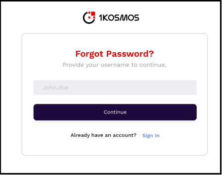 Username - Selecting this option will display the Forgot Password? screen with a username field, allowing users to enter their username. A password reset link will then be sent to the email address associated with that username.