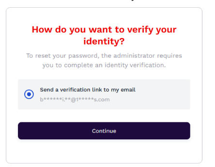 As you have selected the Reset password with link sent to email option, the UI displays the following screen: