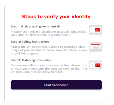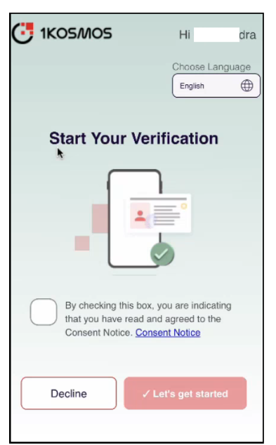 The Start Your Verification screen appears. Check the Consent Notice check box and click Let’s get started.