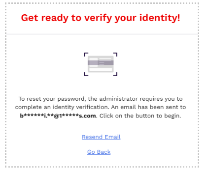 The Get ready to verify your identity! screen notifies the user that the verification link has been sent to the email and indicates the user that the verification is in progress.