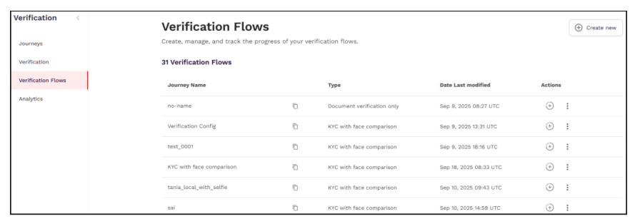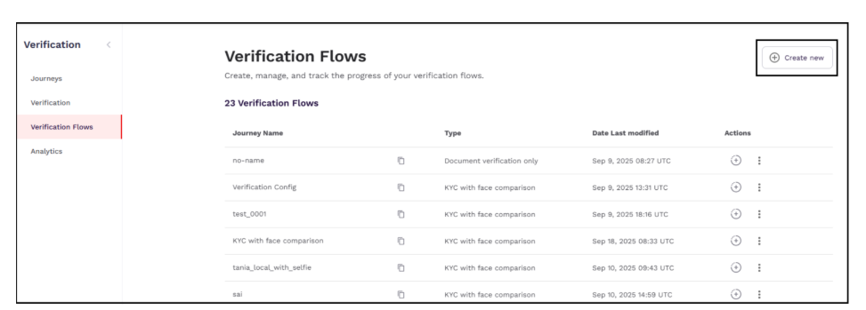 Community administrators or users with the idproofing.list-v2-journey permission can use the Verification > Verification Flows page to: