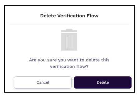 - The Delete Verification Flow window appears, prompting the user to confirm deletion. Click Delete to proceed.