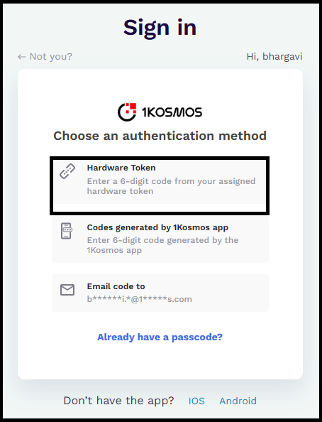 Generate the passcode on your device and enter the passcode. You will be logged into the application.