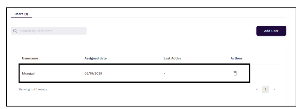 In the Assign User window that is displayed, enter a username in the Add user section and click Update.