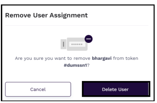 - Users – Use this tab to view the number of users for whom the token has been assigned. Additionally, you can delete the user from the system. Upon deletion, users will be removed from all the associated tokens.