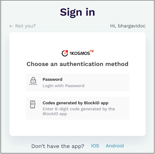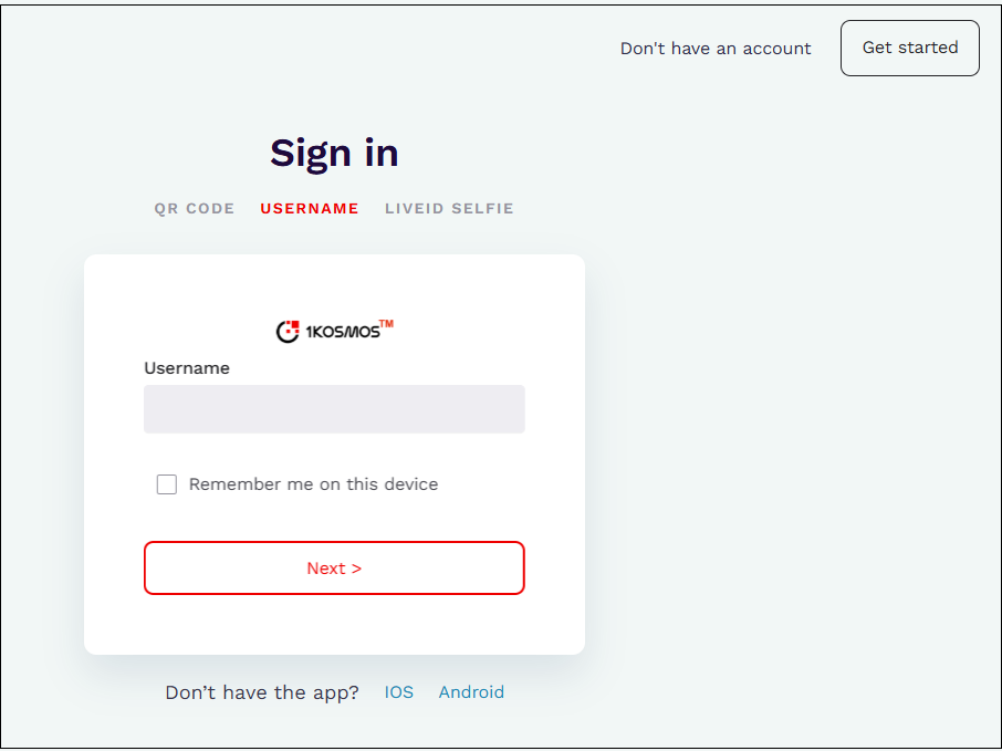 1Kosmos provides several multi-factor authentication options for administrators to use when logging into the AdminX interface, including using a username and password, along with a one-time passcode (OTP) sent to your registered primary email or phone number.