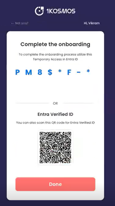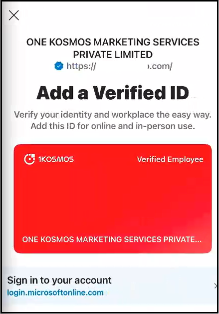 - After successful verification, 1Kosmos generates a Verifiable Credential (VC) and retrieves the credential link from Entra.
