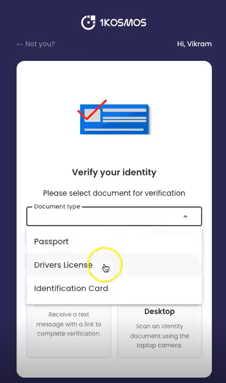 Follow the instructions under the Verifying Identity section to complete document verification.