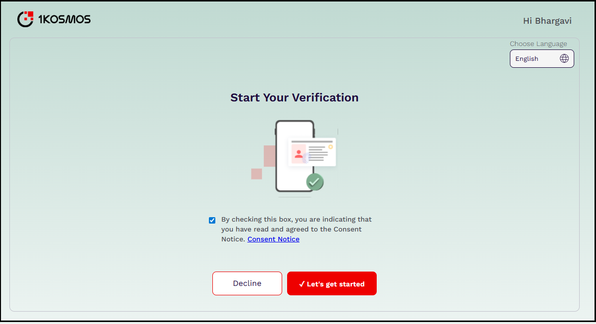- Provide your consent by clicking the Consent check box and click Let's get started.