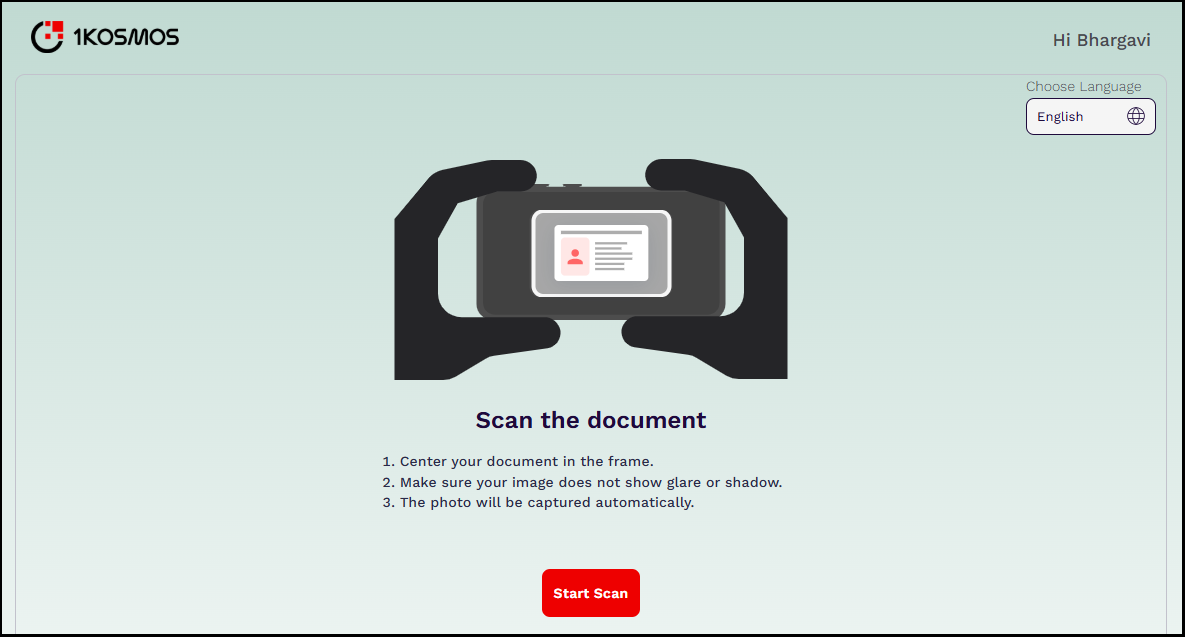 Click Start Scan. The camera opens up; Scan the front side of your identity document.