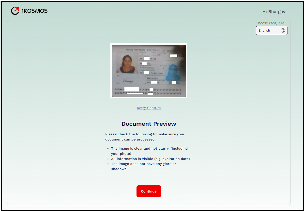 - If a valid result is returned, the journey proceeds to the Document Preview screen, as in the regular flow.