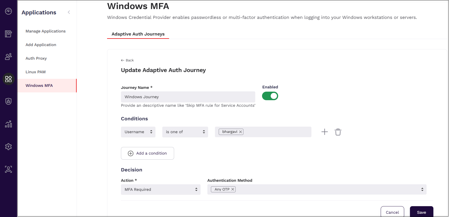 Managing Adaptive Auth Journey For Windows Workstation MFA